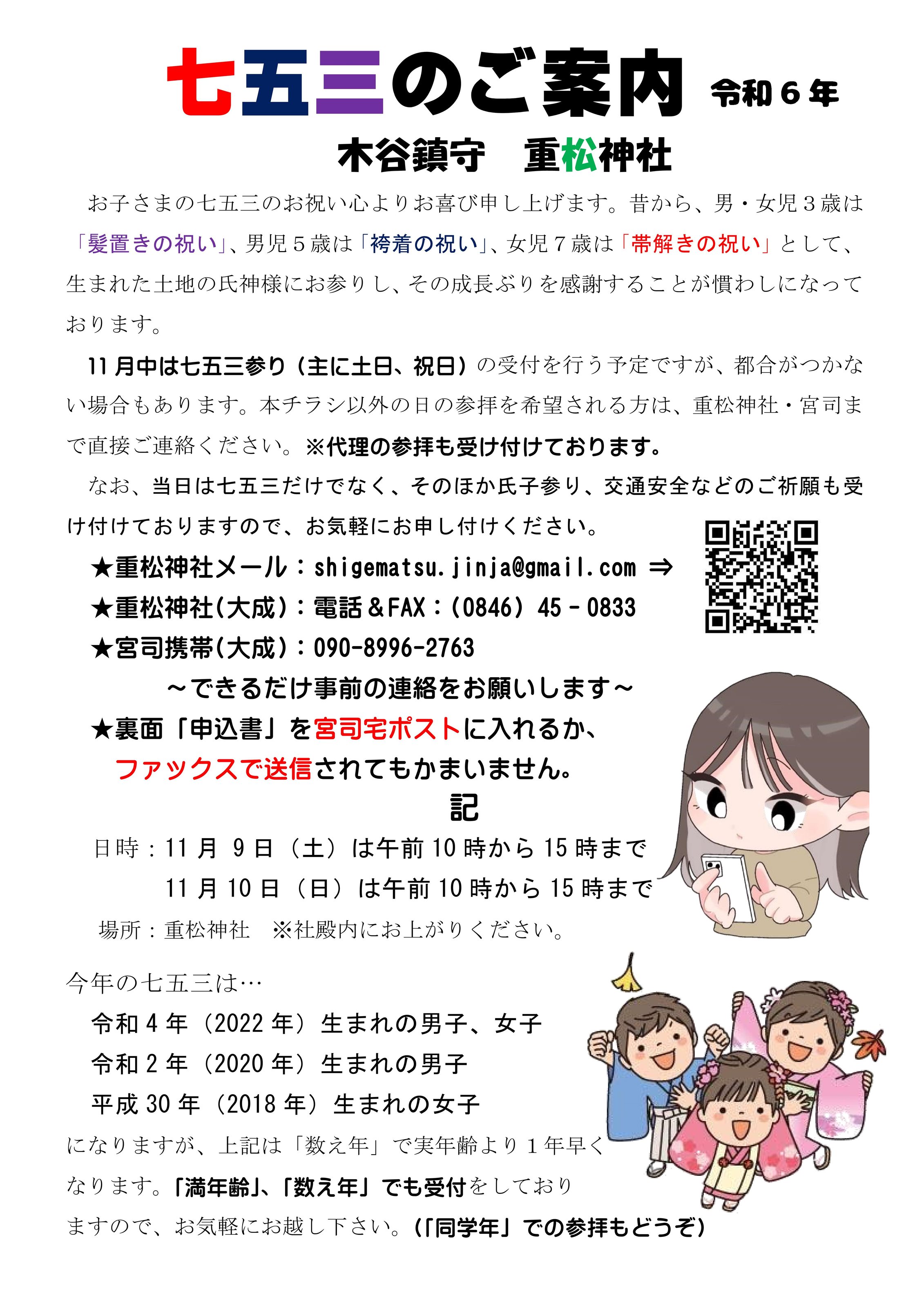 七五三の案内・申込書を掲載しています。
