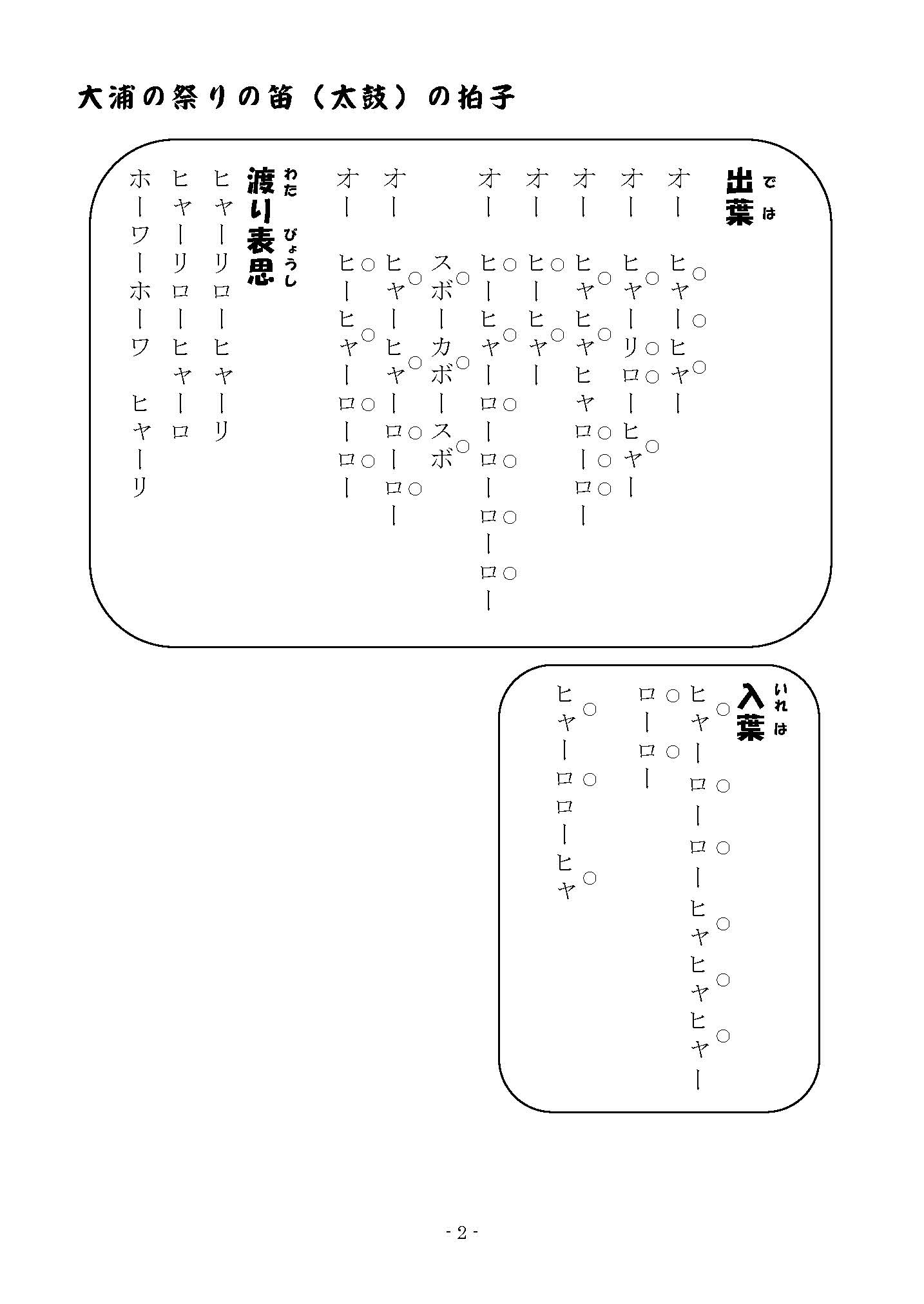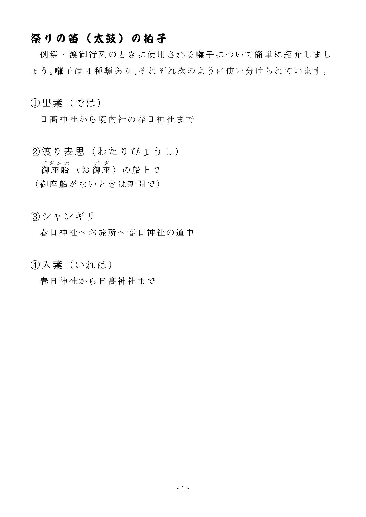 日神社のお囃子について簡単に説明し、その楽譜を紹介します。 ※作成中のところがあります。ご了承ください。