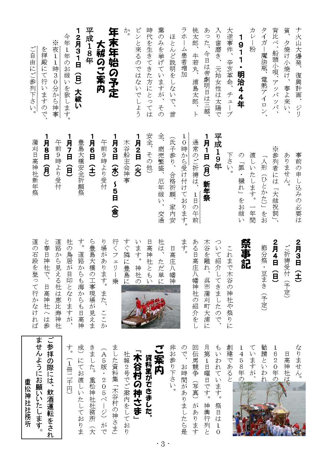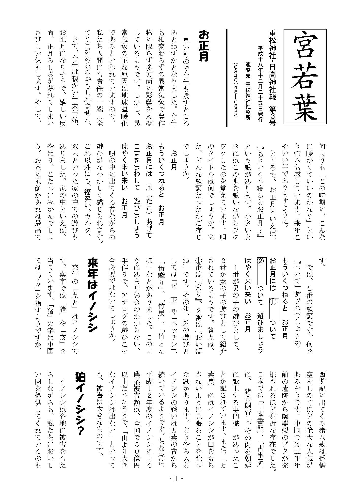 - 重松神社と日神社の社報として、年1回、年末あるいは年始に発行しています。