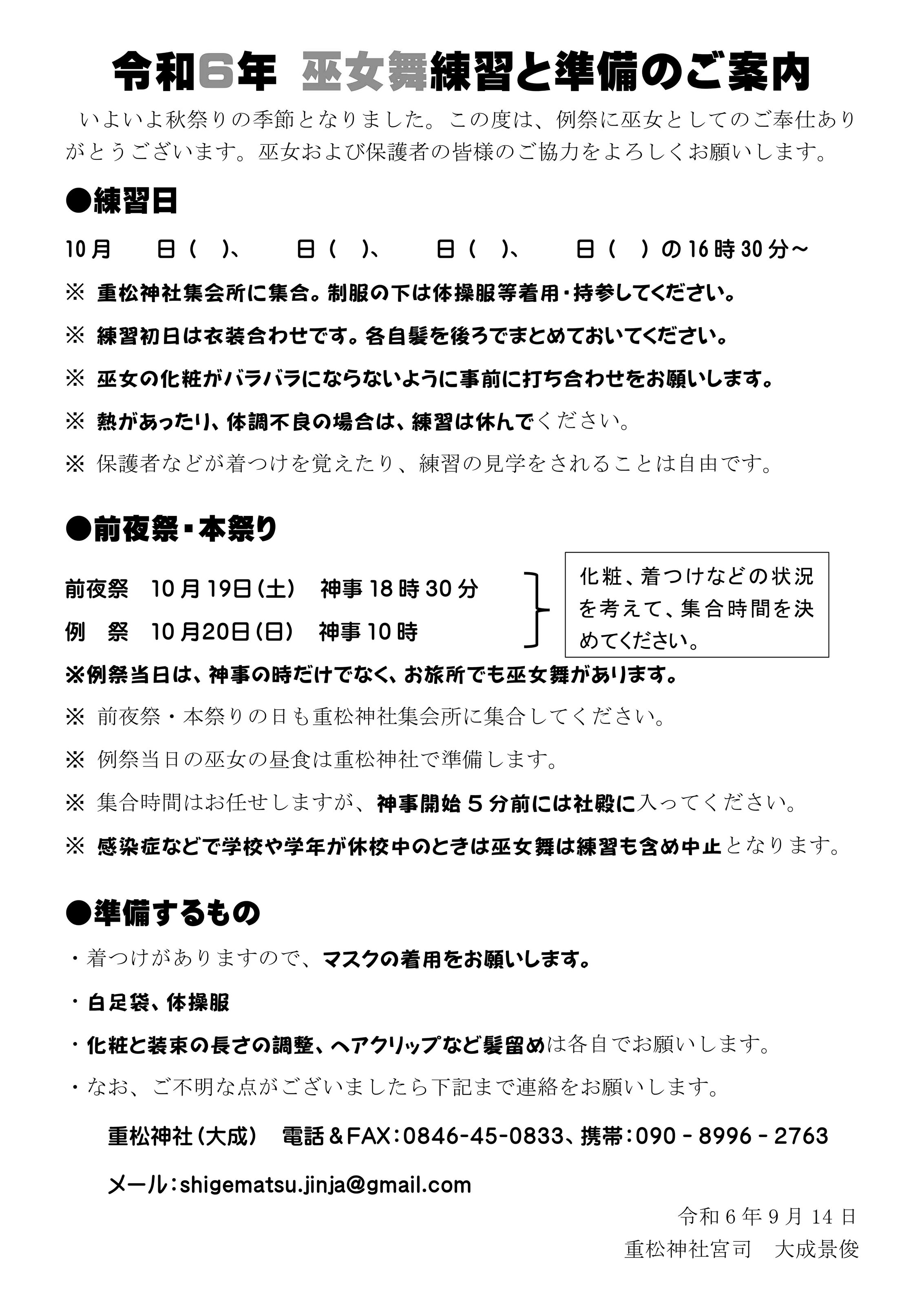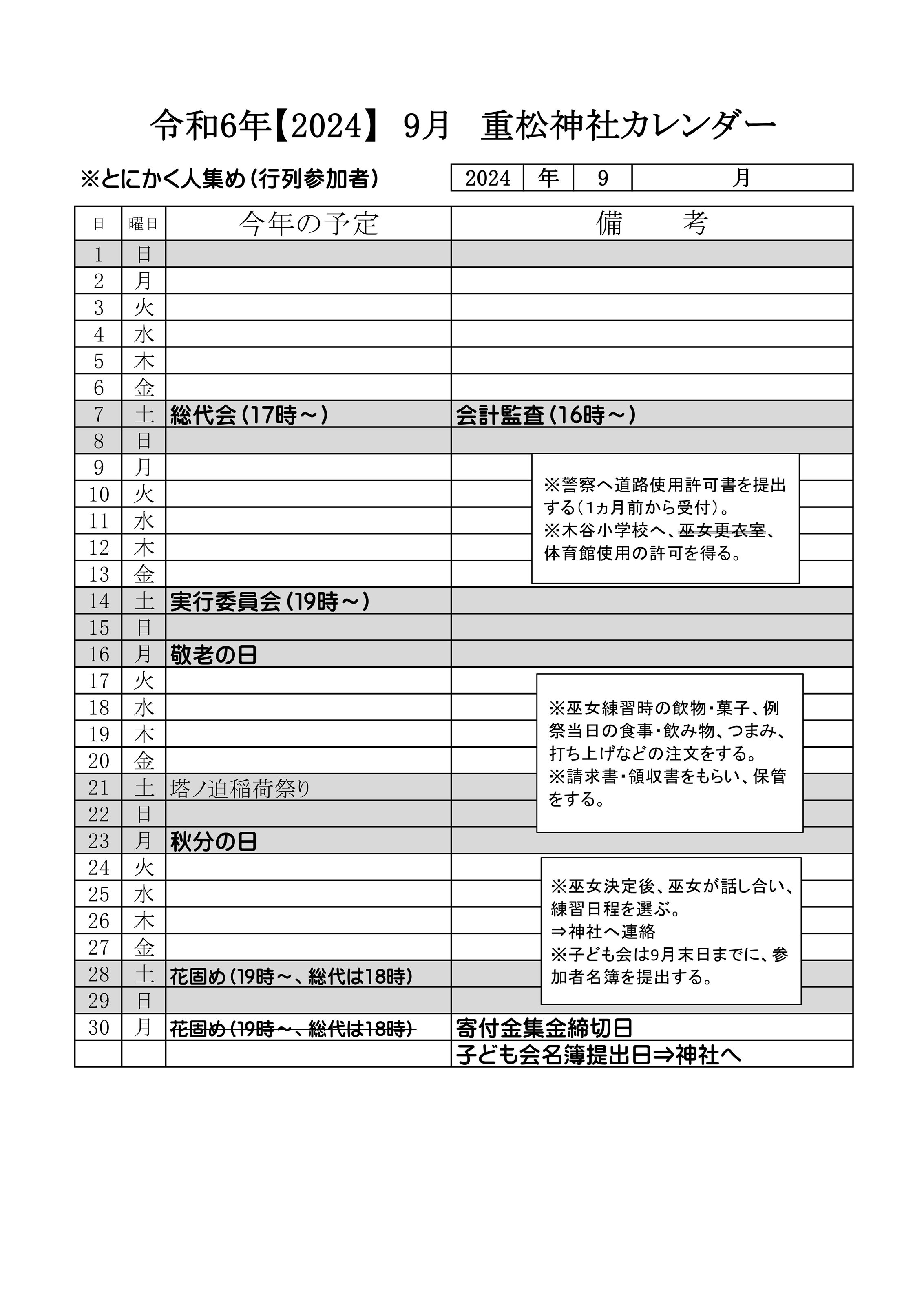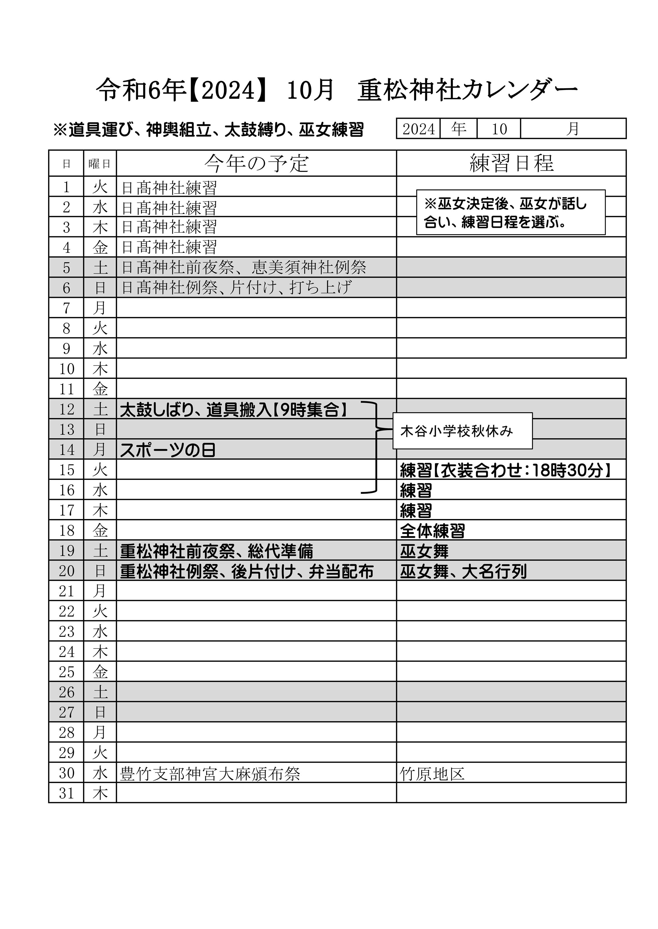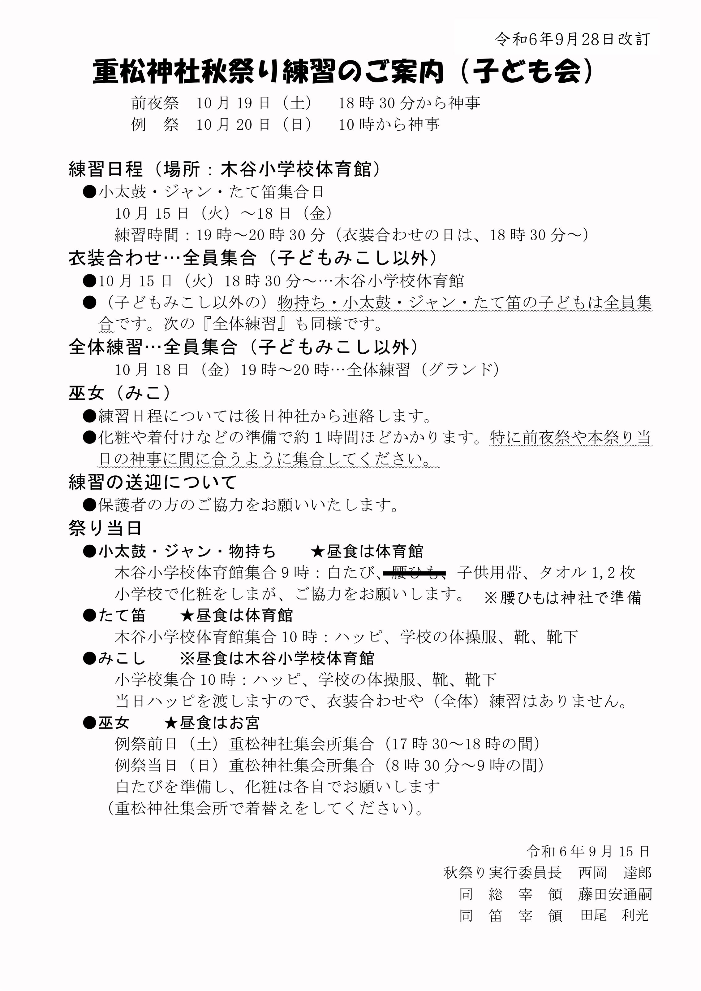 このページは、令和6年度の秋祭りの日程や大名行列の練習などについて掲載しています。知りたい情報については、「目次」をクリックして探してみてください。