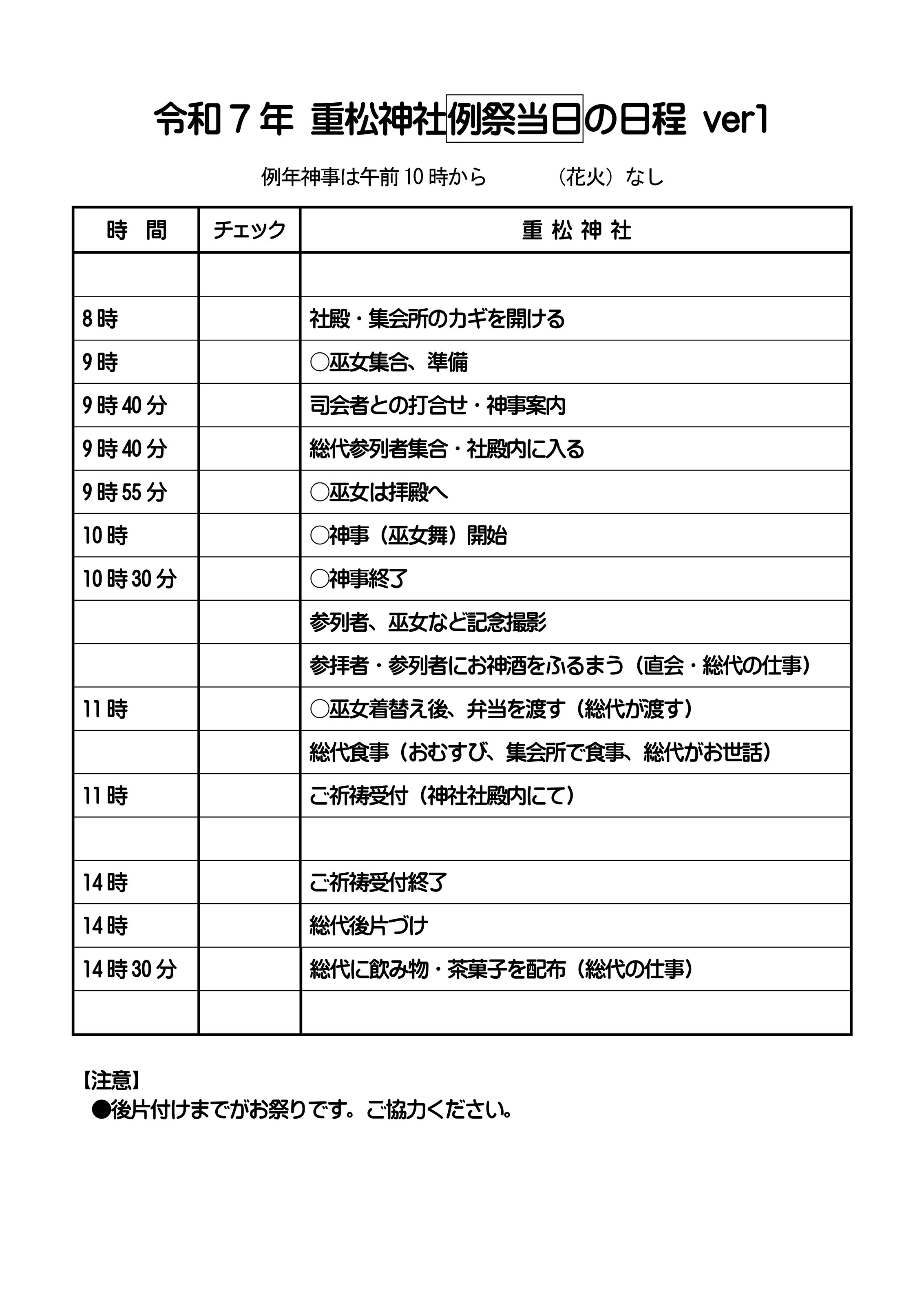 今年は「大名行列」は行いません。社殿の修理、倉庫の整理、参道等の補修、倒木の処理・境内山林の整備などを行います。宗教法人として、求められている事柄でもあります。総代さんだけでなく、広くお声をかけさせていただきたいと思います。ご協力をお願いします。