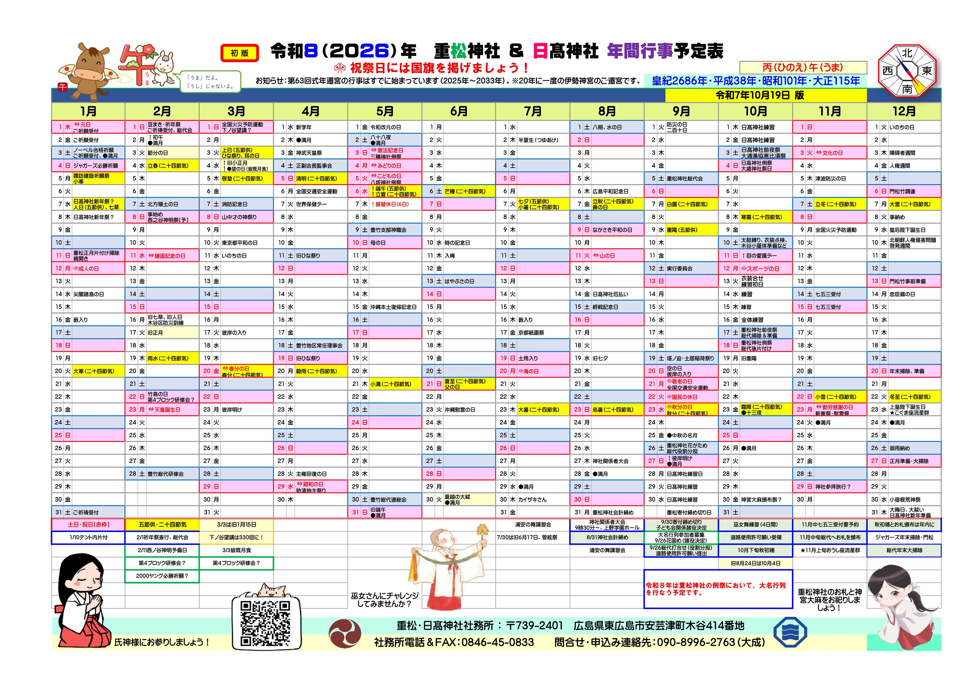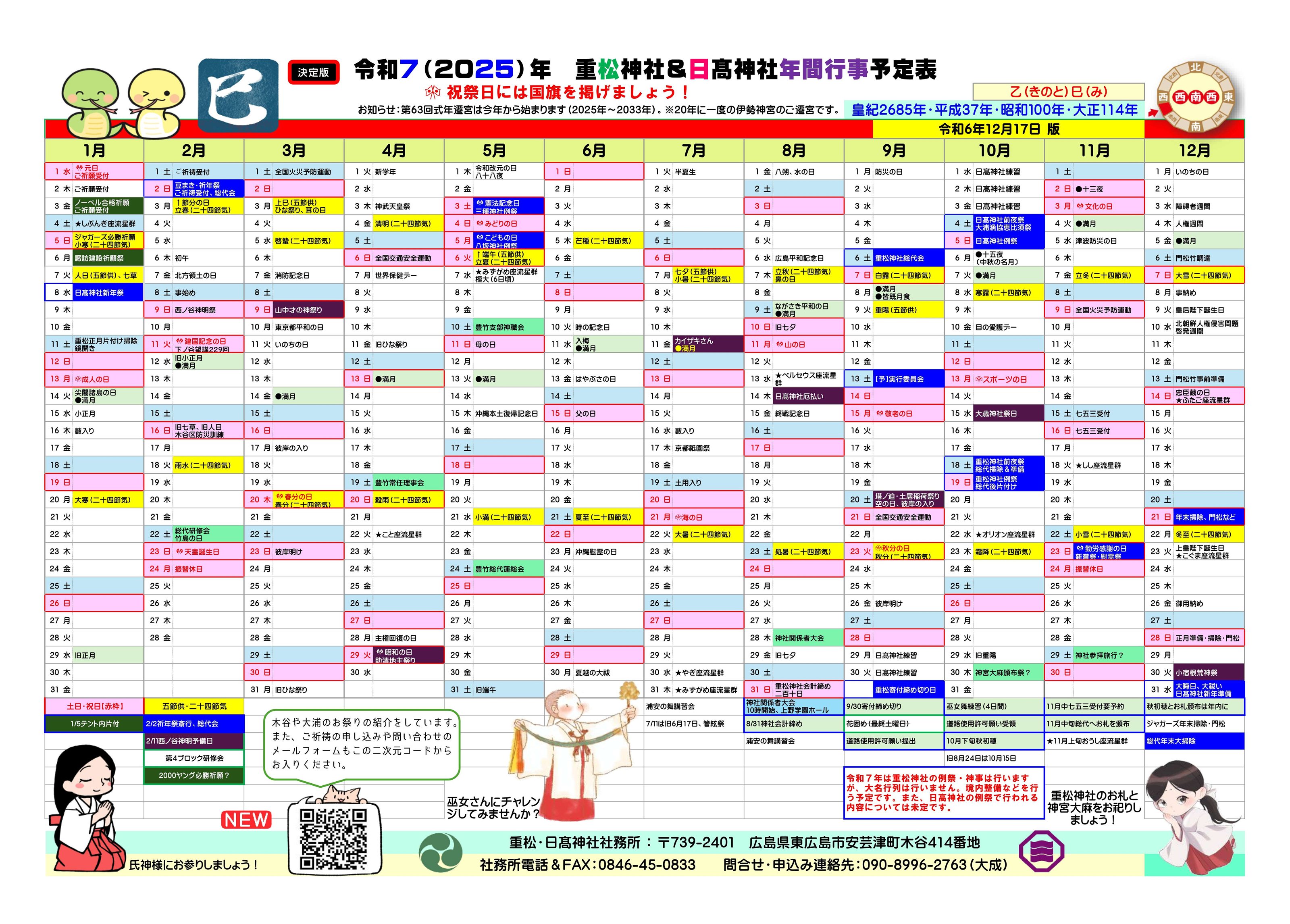 ●1月7日〔日〕日髙神社新年祭・11時前~ ⇒ 1月6日〔土〕に変更
