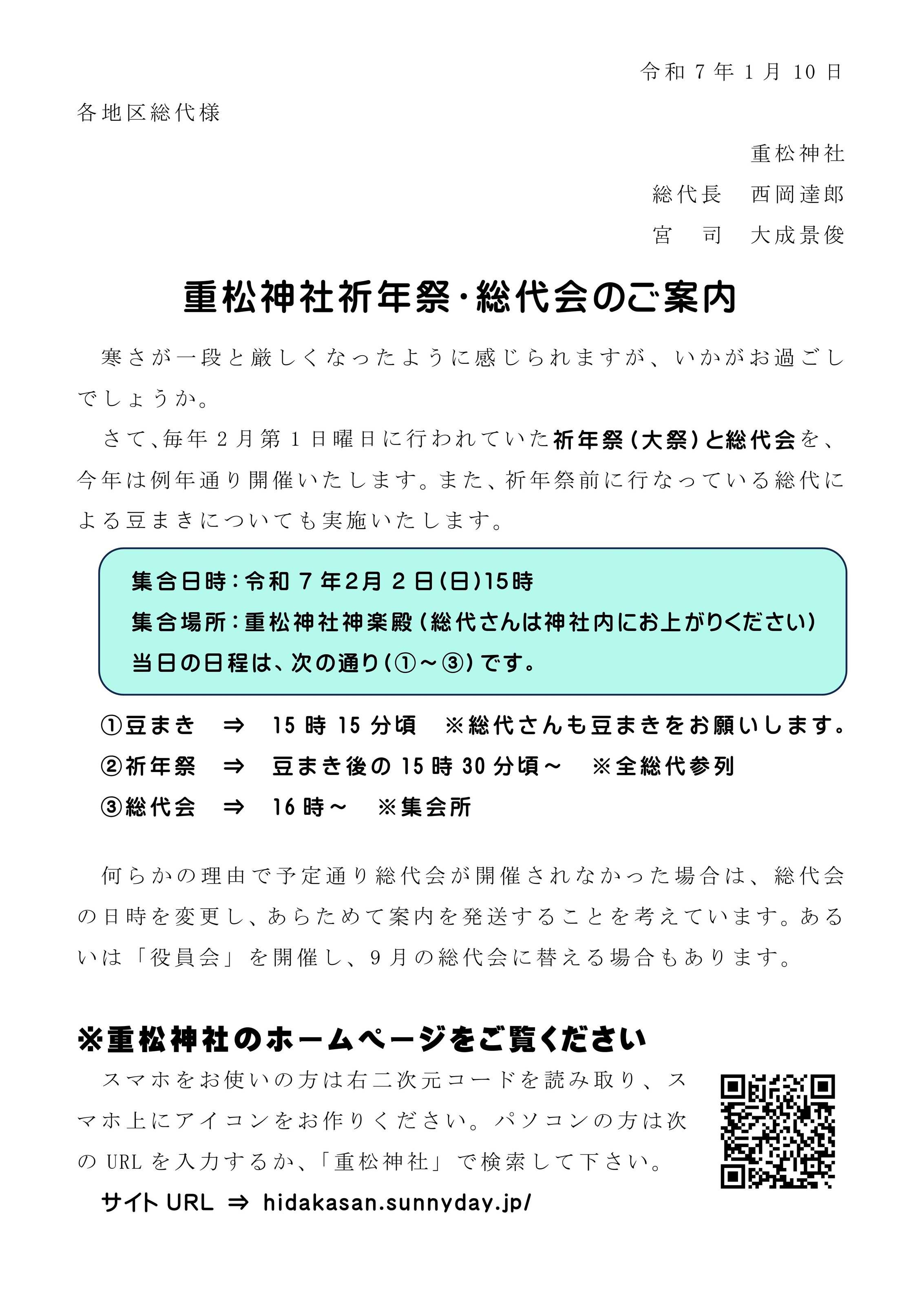 ※1月中に新聞折り込みの予定です。また、重松神社や社務所に案内チラシを置いています。